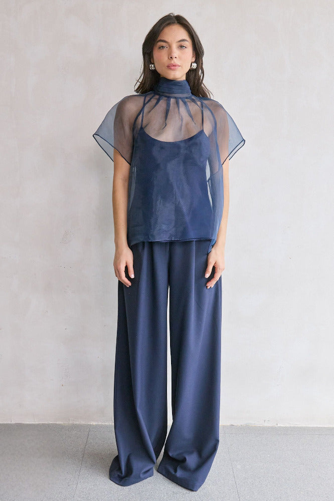 Ruffle High Neck Blouse and Ruffle Maxi Skirt